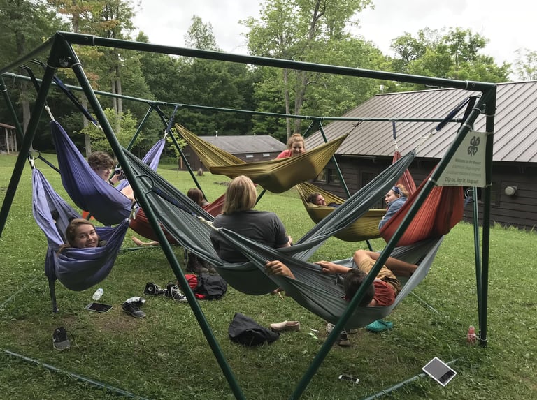There are lots of trees for hammocks, and two pavilions (with electricity!) where you could easily set up hammock stands
