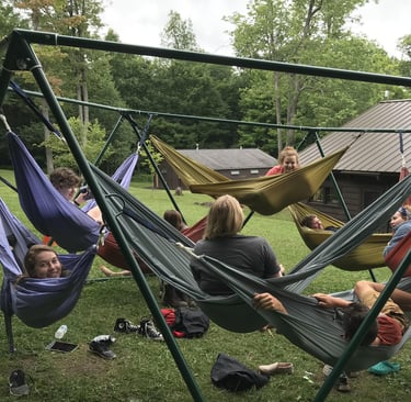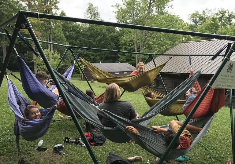 We didn't scope out specific hammock trees, but there are trees everywhere around camp. There's also a covered space by the nature lodge that you could set up a hammock stand, and a giant green thing by the infirmary that you can attach multiple hammocks to.
